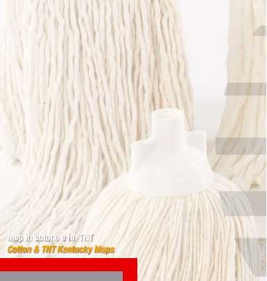 Mop in cotone "extra" ed in viscosa di vari pesi e misure. Con e senza banda ad uso professionale.