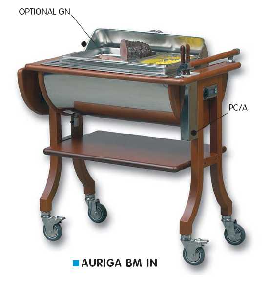 Carrelli completamente in legno per il servizio ai tavoli. Disponibili con cupola in plexiglass a doppia apertura per dolci e formaggi. Esiste anche in versione refrigerato con piastre eutettiche.